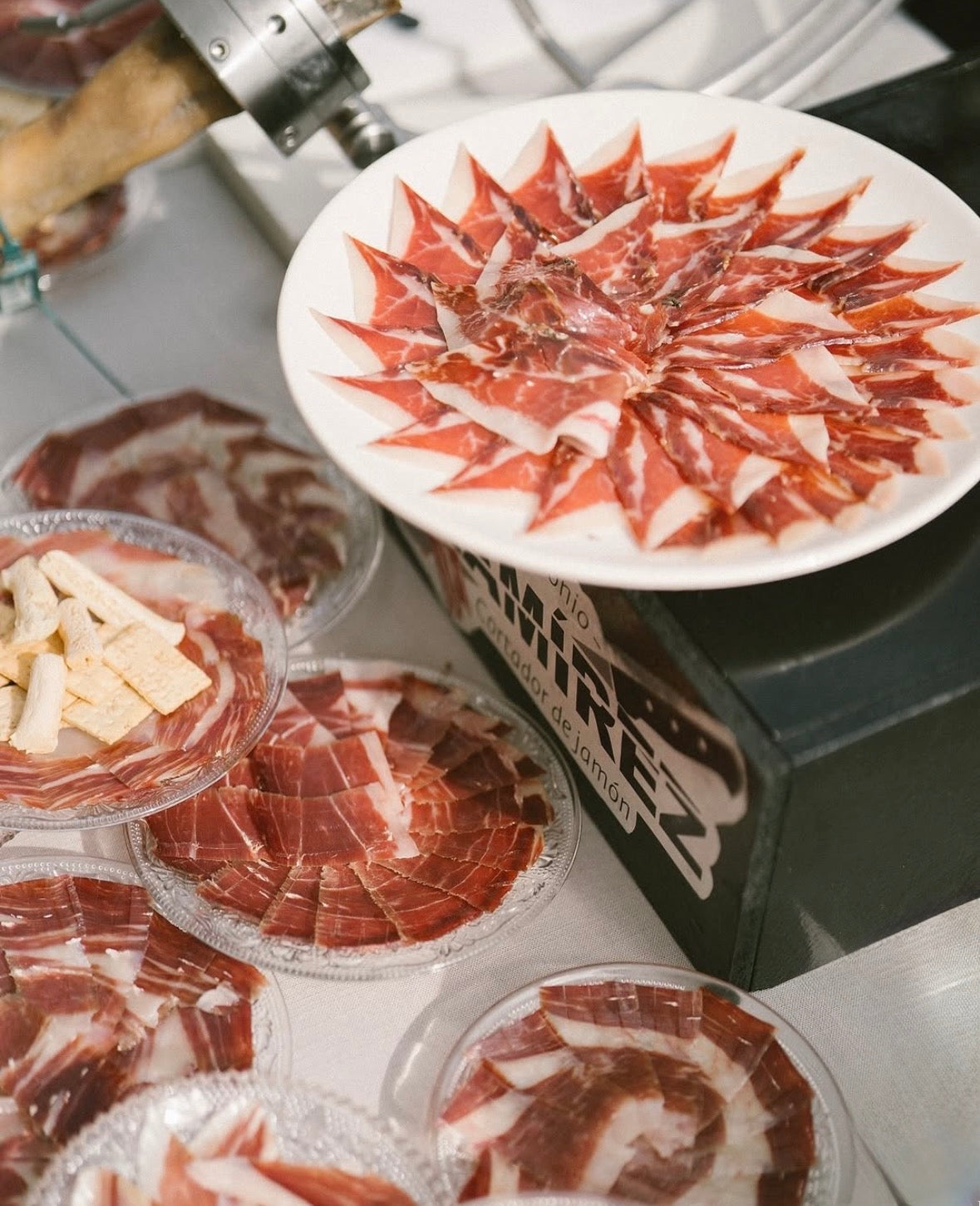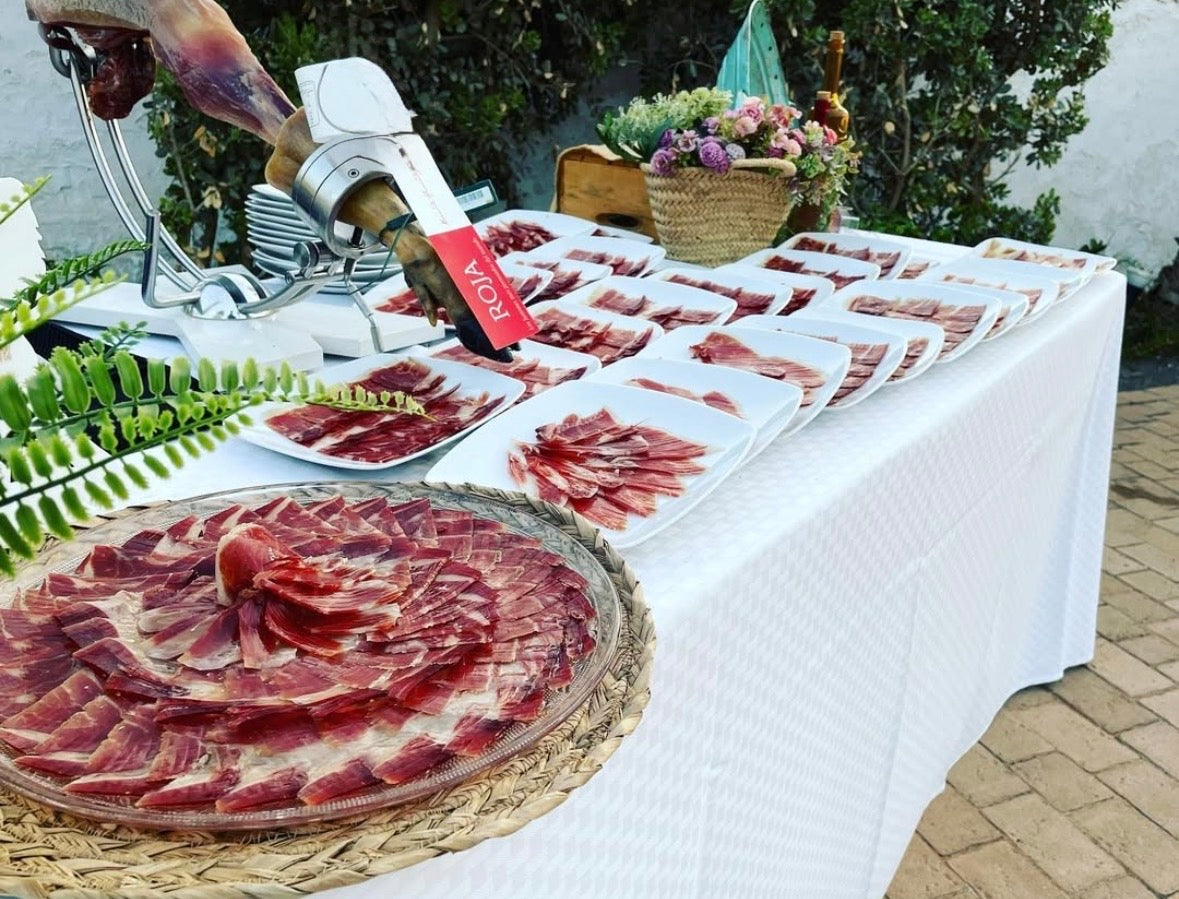 Corte de jamón profesional a cargo de nuestros expertos cortadores.
